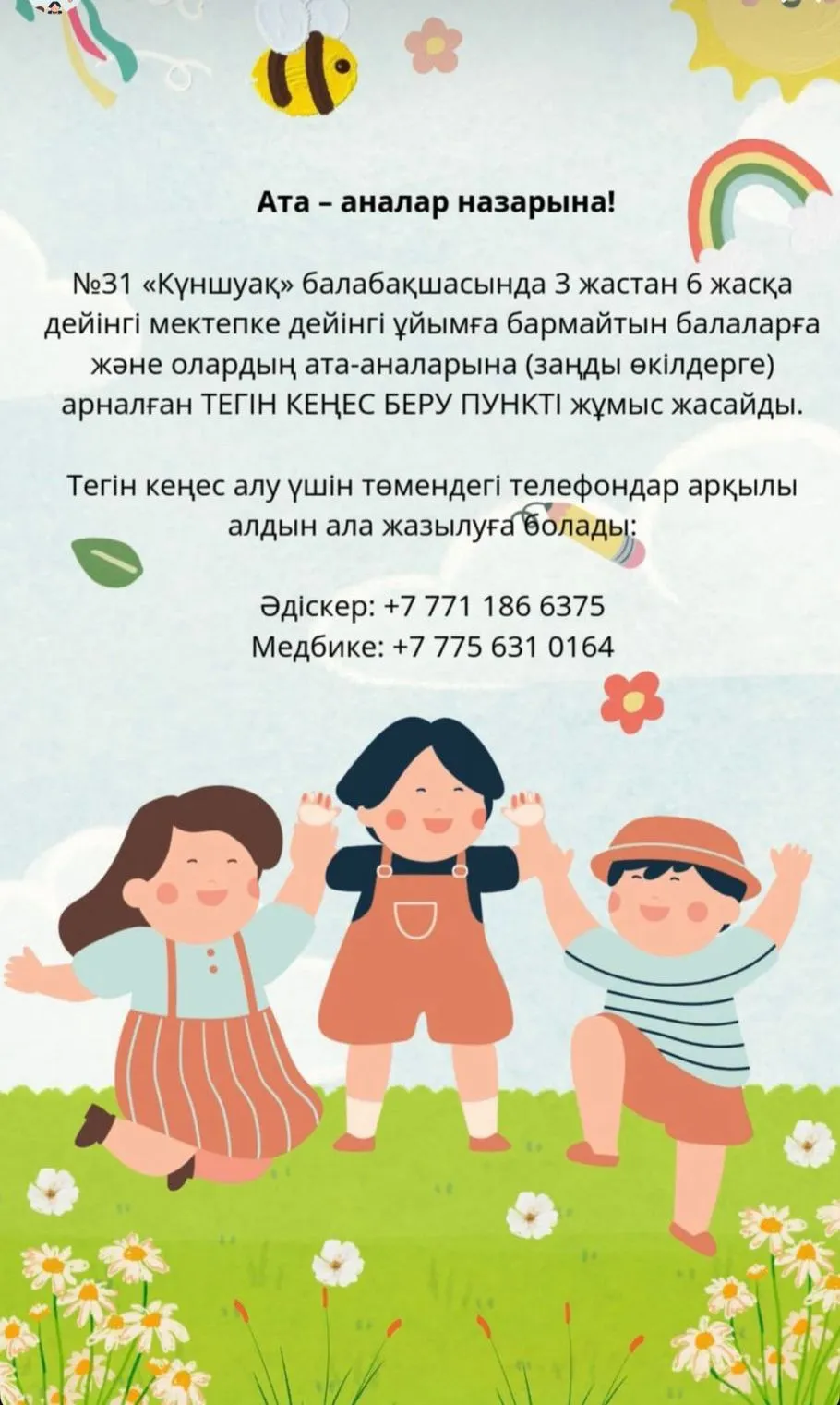 Басты бет » КПР Кеңес беру пункті КПР Кеңес беру пункті Бұйрық 28.pdf Жұмыс Кестесі.pdf Nº31 «Куншуак» балабакшасы МККК.pdf